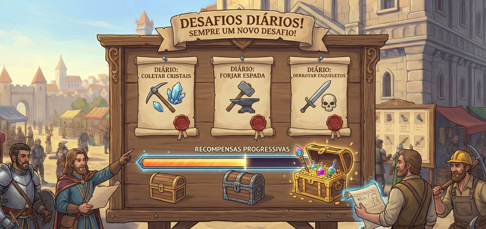 Complete tarefas diárias e receba recompensas progressivas. Sempre há um novo desafio esperando por você.
