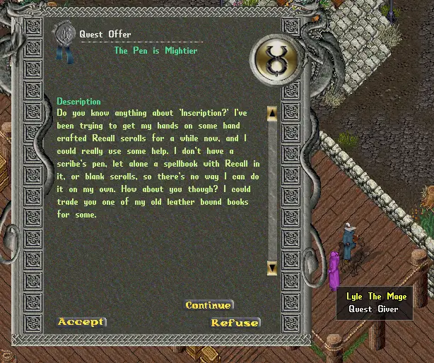 Além das quests já citadas, existem quests especiais, como a de Grizelda, que permite adquirir a Bag of Sending, e também a quest do bibliotecário de Britain, que lhe dá acesso aos NPC’s da biblioteca que podem remunerar os jogadores com pontos para trocar nas mais diversas sociedades (Crafters, Aventureiros, Pescadores, etc). São inúmeras atividades novas! Levará um bom tempo até os jogadores decidirem quais linhas seguir.